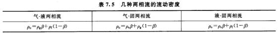 如果氣相密度為Pg、固相密度為ρs、液相密度為ρ1,結合表7.3中的公式,對幾種兩相流的流動(dòng)密度見(jiàn)表7.5。
