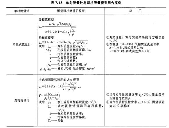 (1)單相流量計測量?jì)上嗔髁繎靡慌_單相流量計與兩相流量模型組合測量?jì)上嗔髁砍晒Φ膶?shí)例見(jiàn)表7.13。