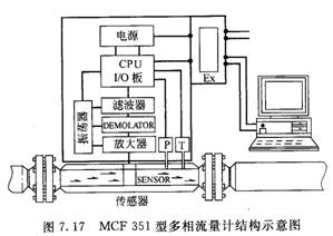 Fluenta公司的MPFM 1900型多相流量計是在原有MPFM 900型三相(體積百分率)流量計(圖7.12)基礎上,增設以電子相關(guān)信號為基礎的流速計和新開(kāi)發(fā)的微機軟件配套制成。