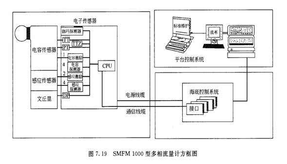 MPFM 1900型計量系統由測量流體介電常數(電容率)及氣、液各相流速的電容傳感器及電子線(xiàn)路,測量流體密度的γ射線(xiàn)密度計,執行數據分析的計算機組成。要求的溫度、壓力等計算用數據由外裝傳感器提供。