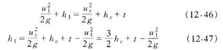 如果水路的截面形狀固定,在式(12-47)右邊的幾個(gè)變量hc、u1和流量qv之間有一定的函數關(guān)系,這樣h1也是qv的函數,所以式(12-47)又可表示為