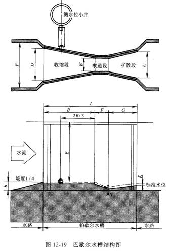 巴歇爾水槽的形狀如圖12-19所示。它是由三部分構成的: