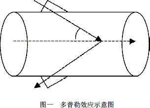 如圖一所示,當超聲波束在管軸線(xiàn)上遇到一顆固體粒子,該粒子以速度u沿管軸線(xiàn)運動(dòng)。對超聲波發(fā)射器而言,該粒子以速度u cos α離去,所以粒子收到的超聲波頻率f2為: