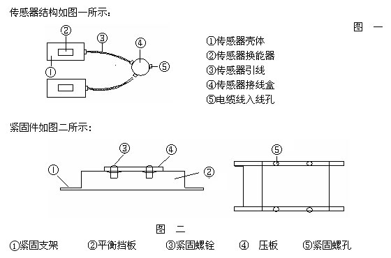 傳感器的安裝 傳感器的外形圖及緊固件結構圖 |